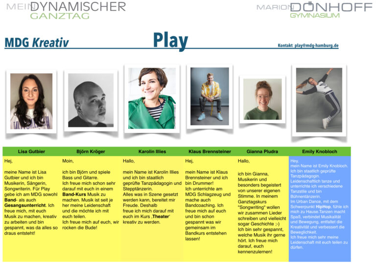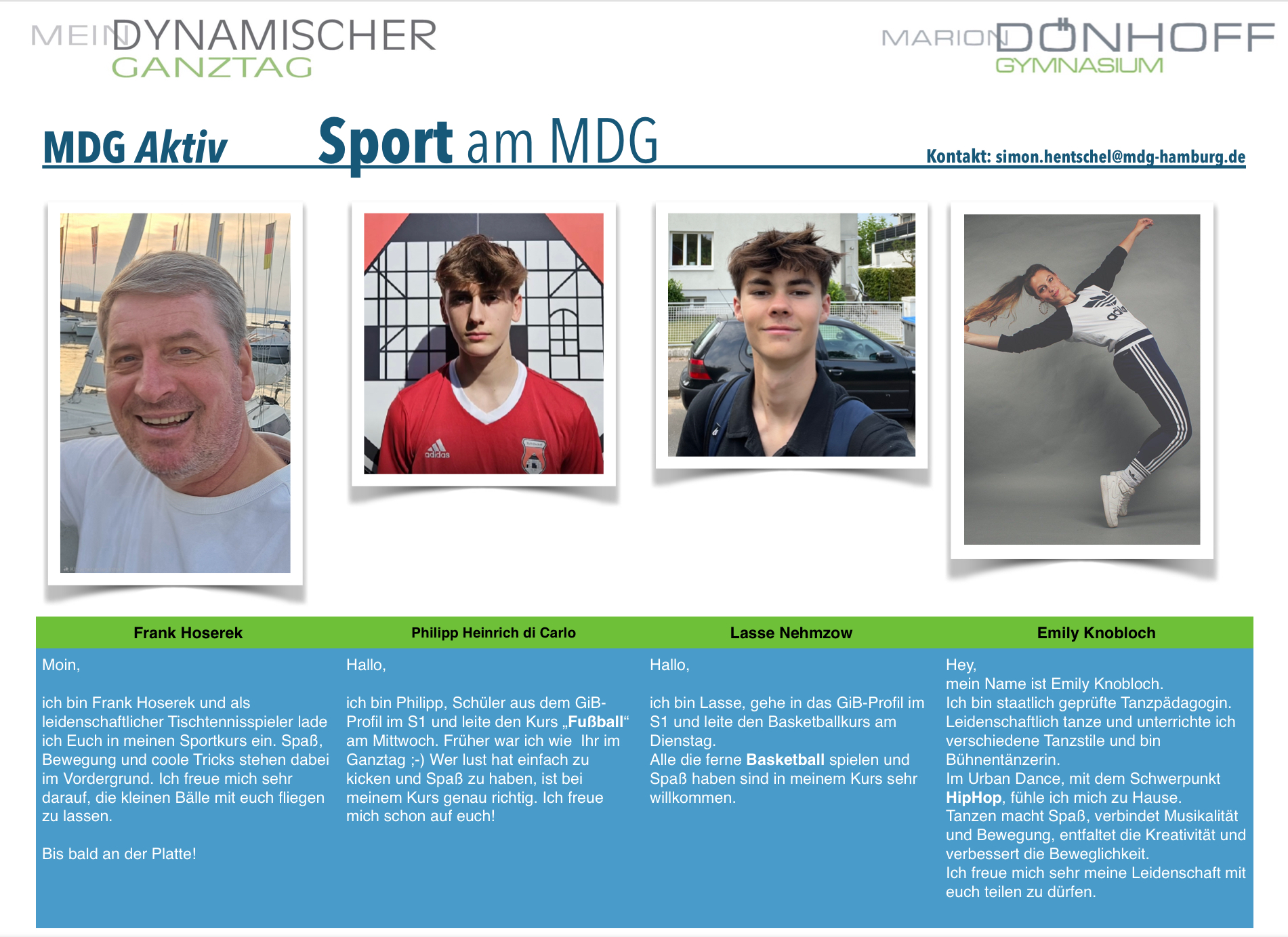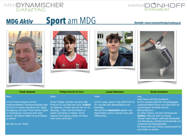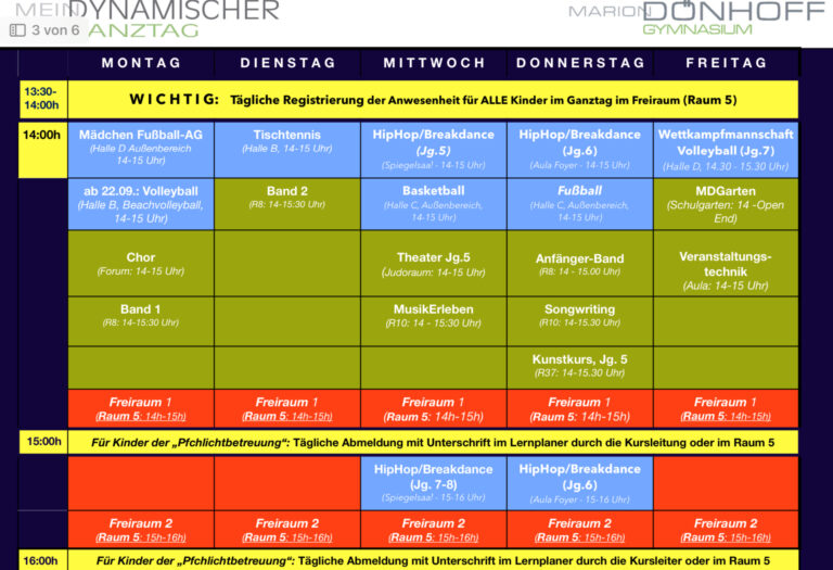 Willkommen bei ‚Mein Dynamischer Ganztag‘ – dem Nachmittagskursprogramm am Marion Dönhoff Gymnasium.