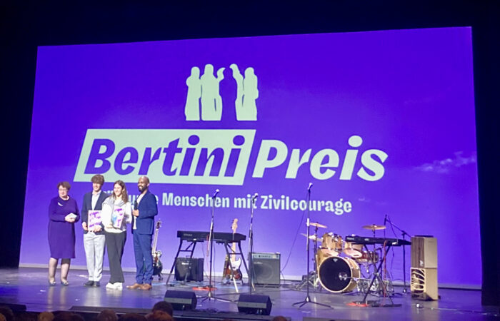 Das Projekt, welches 2019 von Pippa und Willy Sörensen gestartet und inzwischen von allen Schulen und Vereinen im Stadtteil getragen wird, wurde am  27. Januar 2025 mit dem namhaften BERTINI-Preis für politisches Engagement von Jugendlichen gegen Ausgrenzung und Hass in unserer Stadt ausgezeichnet. Wir gratulieren Willy und Pippa und ein bisschen auch allen Schülerinnen und Schülern, die von unserer Schule in den vergangenen Jahren die Steine von Max und Isidor Salomon sowie Johanna Friedländer am Sülldorfer Kirchenweg geputzt und die Erinnerung an diese drei Menschen im Stadtteil aktiv wachgehalten haben.