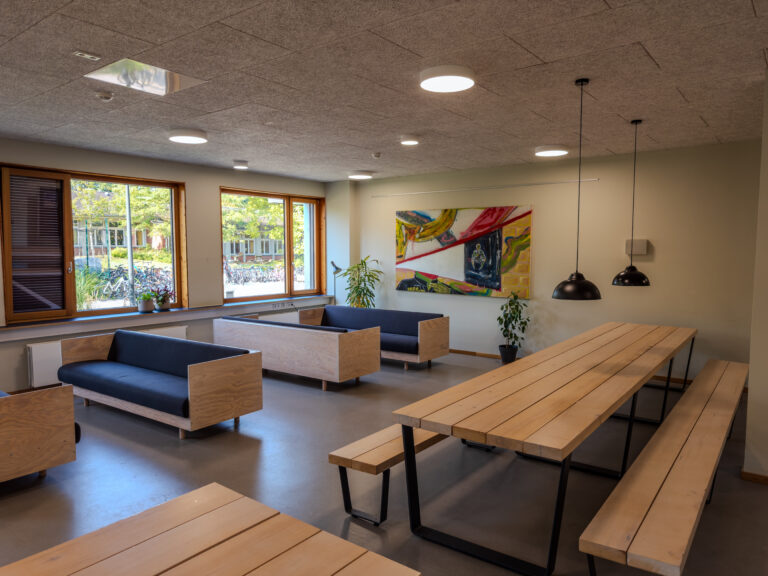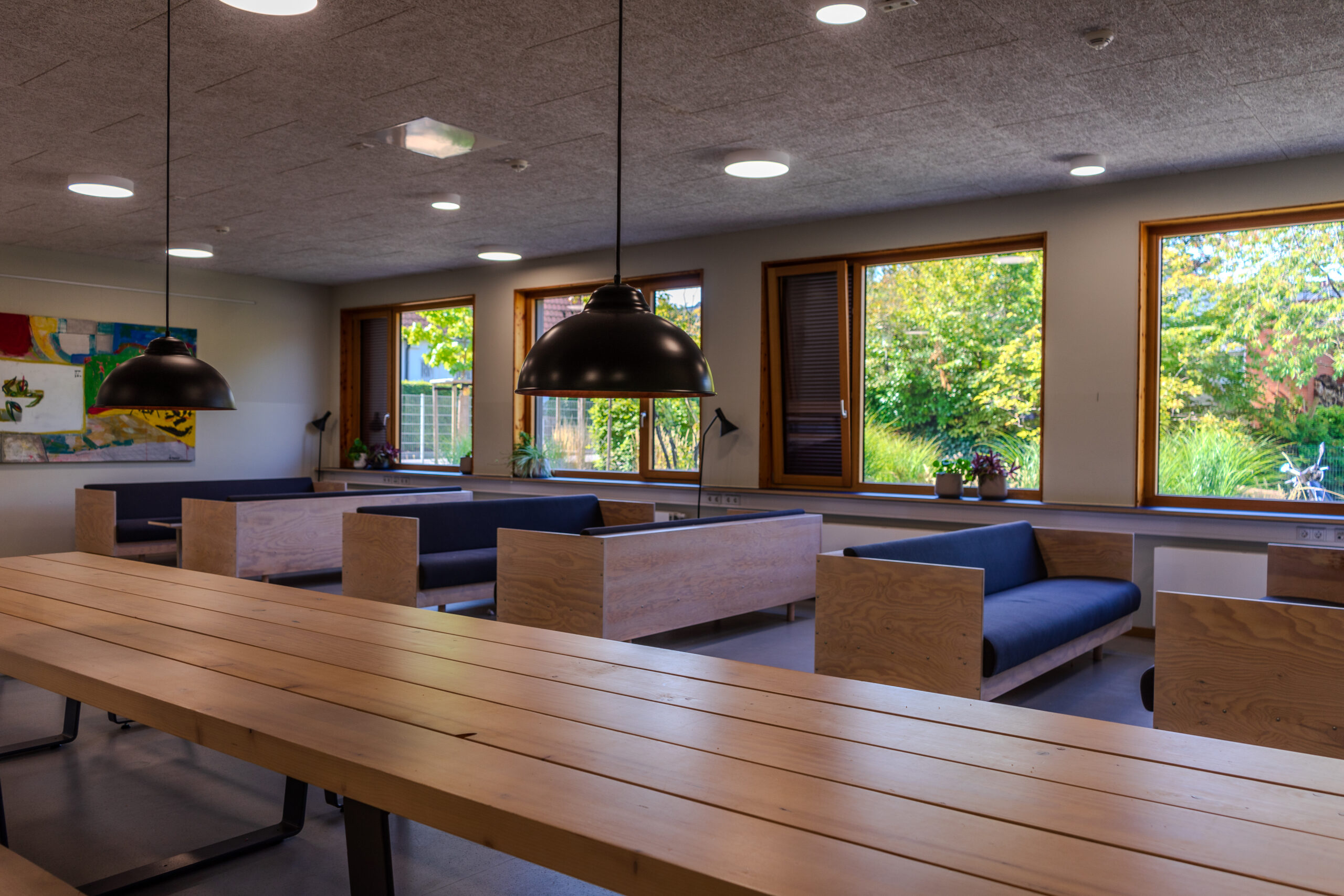 Seit dem Schuljahr 2022/23 findet das Leben und Lernen für die Schüler:innen der Studienstufe maßgeblich in unserem neuen Oberstufenhaus statt. Jedes Profil hat seinen eigenen Profilraum, großzügige Flure mit Sofas und Nischen bieten viel Platz und unterschiedliche Gelegenheiten zum individuellen und kooperativen Arbeiten. Im Zentrum des Hauses befindet sich unsere Schulbibliothek, die allen Schüler:innen offen steht und jederzeit Raum für ruhiges, konzentriertes Lernen oder auch mußevolle Entspannung bietet. Bücher, Zeitschriften und digitale Medien können ausgeliehen oder in Präsenz genutzt werden . Die Schüler:innen der Studienstufe haben außerdem einen großzügigen Aufenthaltsraum zu ihrer Verfügung, in dem sie sich in den Pausen und in Freistunden entspannen und unterhalten können. Im angrenzenden Café Marion stehen Wasserkocher, Kaffeemaschinen und Mikrowellen bereit, so dass für das leibliche Wohl gesorgt ist.