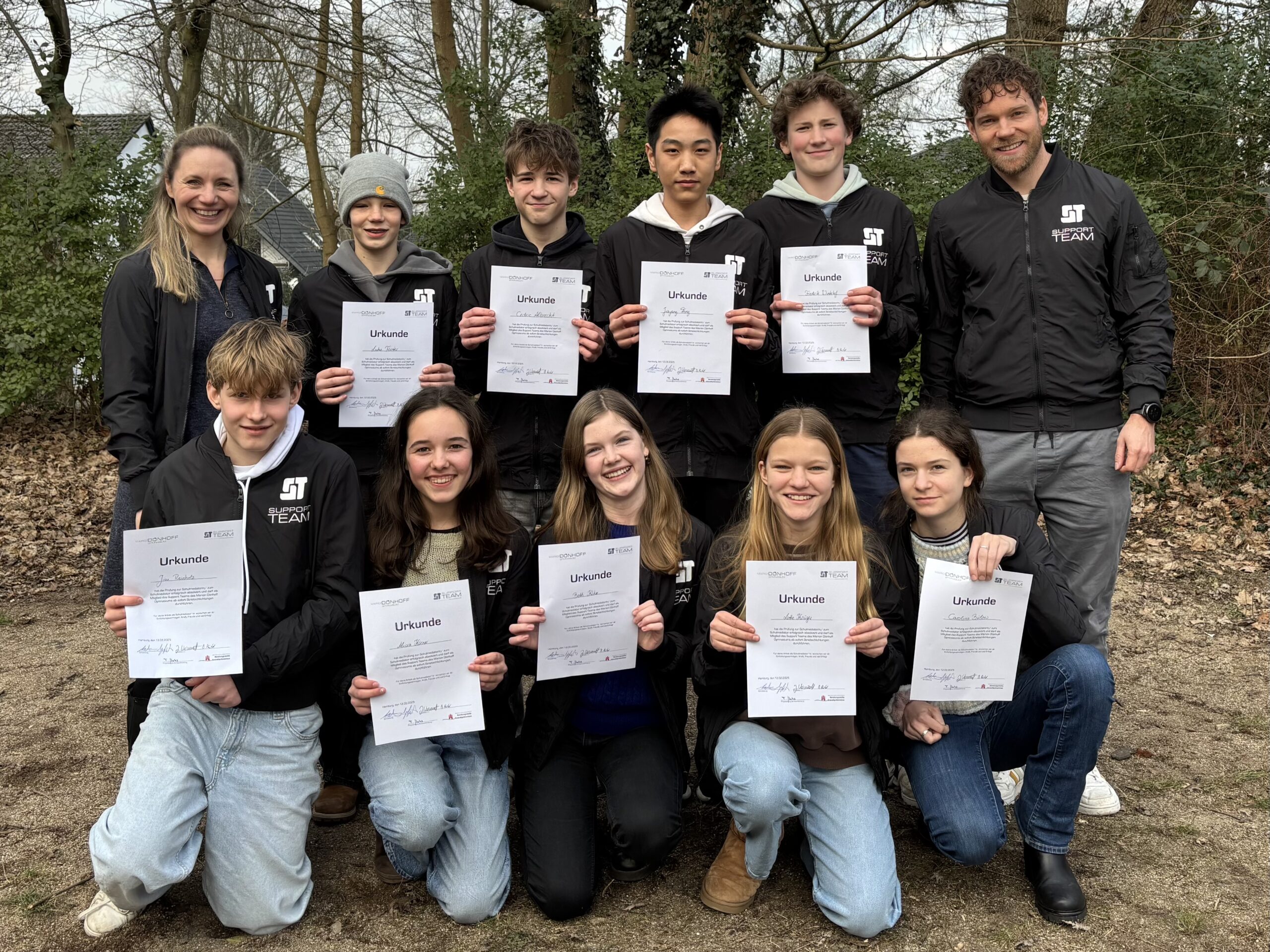 3. Ab der Jahrgangsstufe 7 dürfen sich sportlich interessierte Schüler:innen zu sogenannten Schulsportassistent:innen ausbilden lassen. Die Ausbildung findet in Kooperation mit der NTJ statt und ist vom Deutschen Turnerbund lizensiert. Unsere Schulsportassistent:innen unterstützen u.a. die aktive Pause, den Ganztag und das Sportfest. (Kooperation mit Felix Stuppmann)